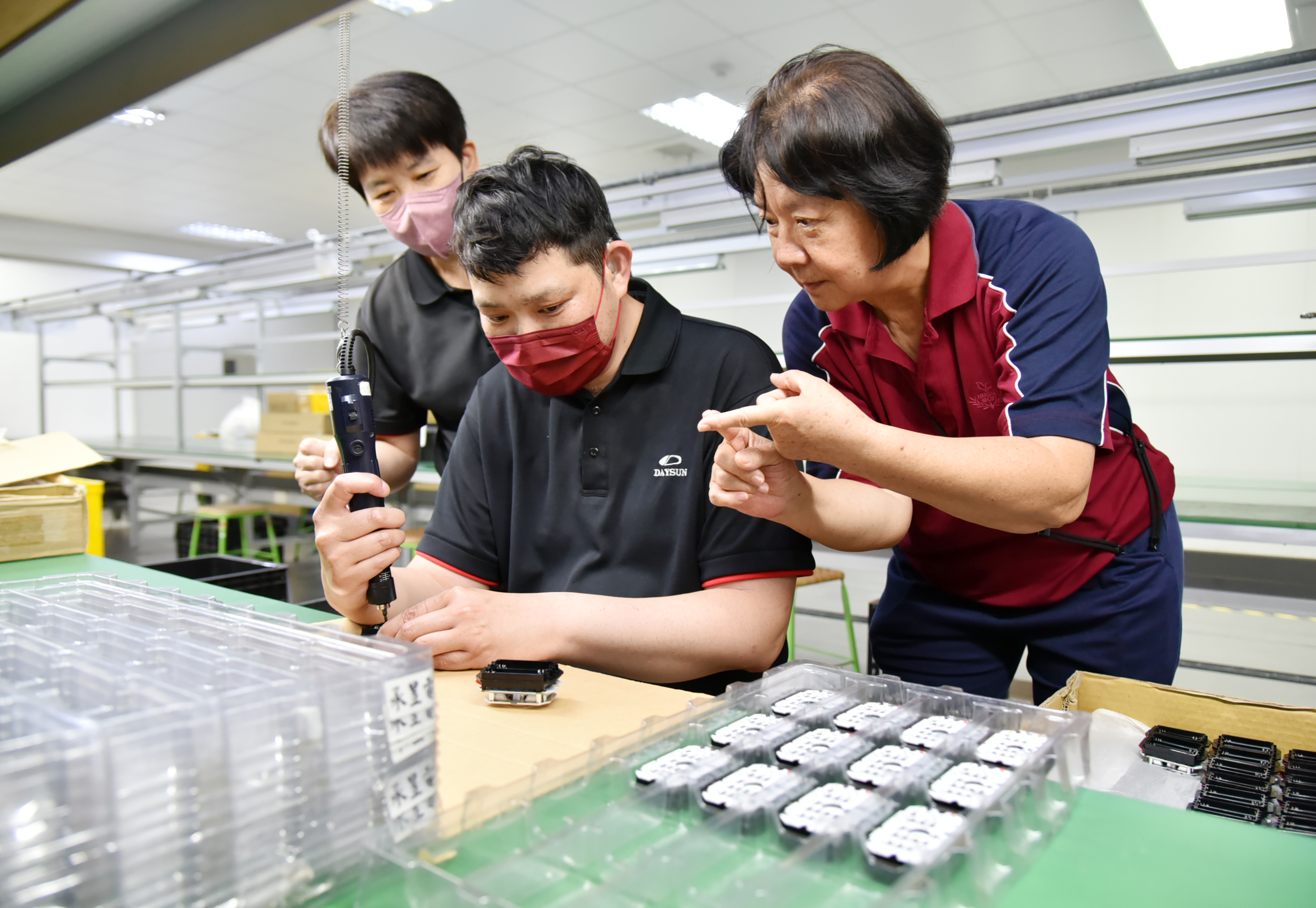 大舜照明科技公司人資顏英娟指出,王唯安雖然聽力受限,但他工作細心、態度認真負責,對於機台操作與產品品質要求嚴謹,現已成為產線上不可或缺的成員,公司也因此逐步建立包容與支持的工作文化,為王唯安進行職務調整,讓他能更順利執行工作。