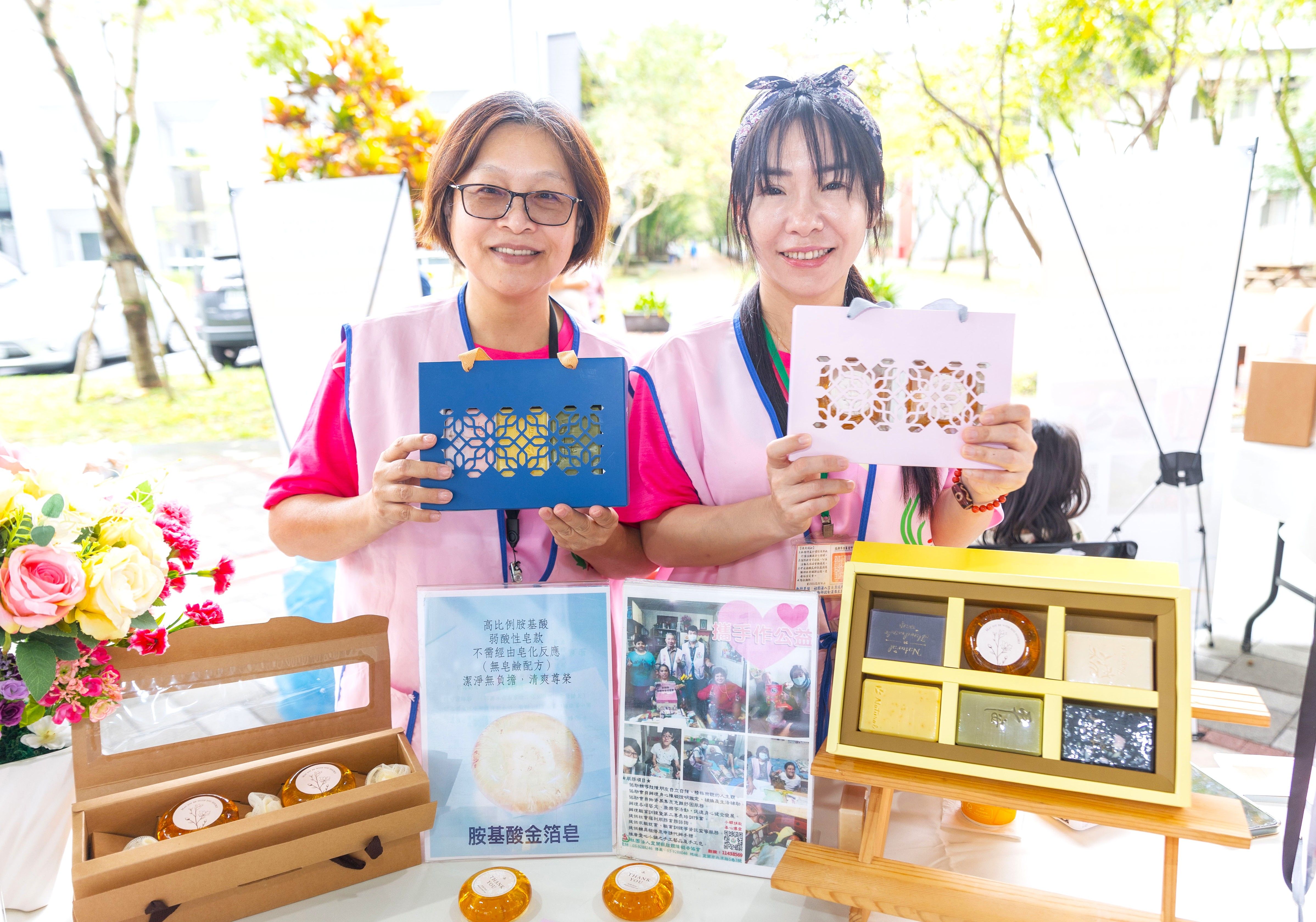 除了食品外,亦有兼具節慶意象與實用功能的生活好物。「宜蘭縣肢體障礙者協會」推出的艾草手工皂,運用天然素材重現驅邪保平安的端午傳統;「勵馨基金會—馨工房」設計的琉璃金粽鑰匙圈結合工藝與節慶象徵,別緻實用;「台北市脊髓損傷者協會」推出的香氛蠟燭禮盒則以療癒香氣,為生活增添一份儀式感。從餐桌到日常,款款皆展現多元團體的用心經營與在地溫度。