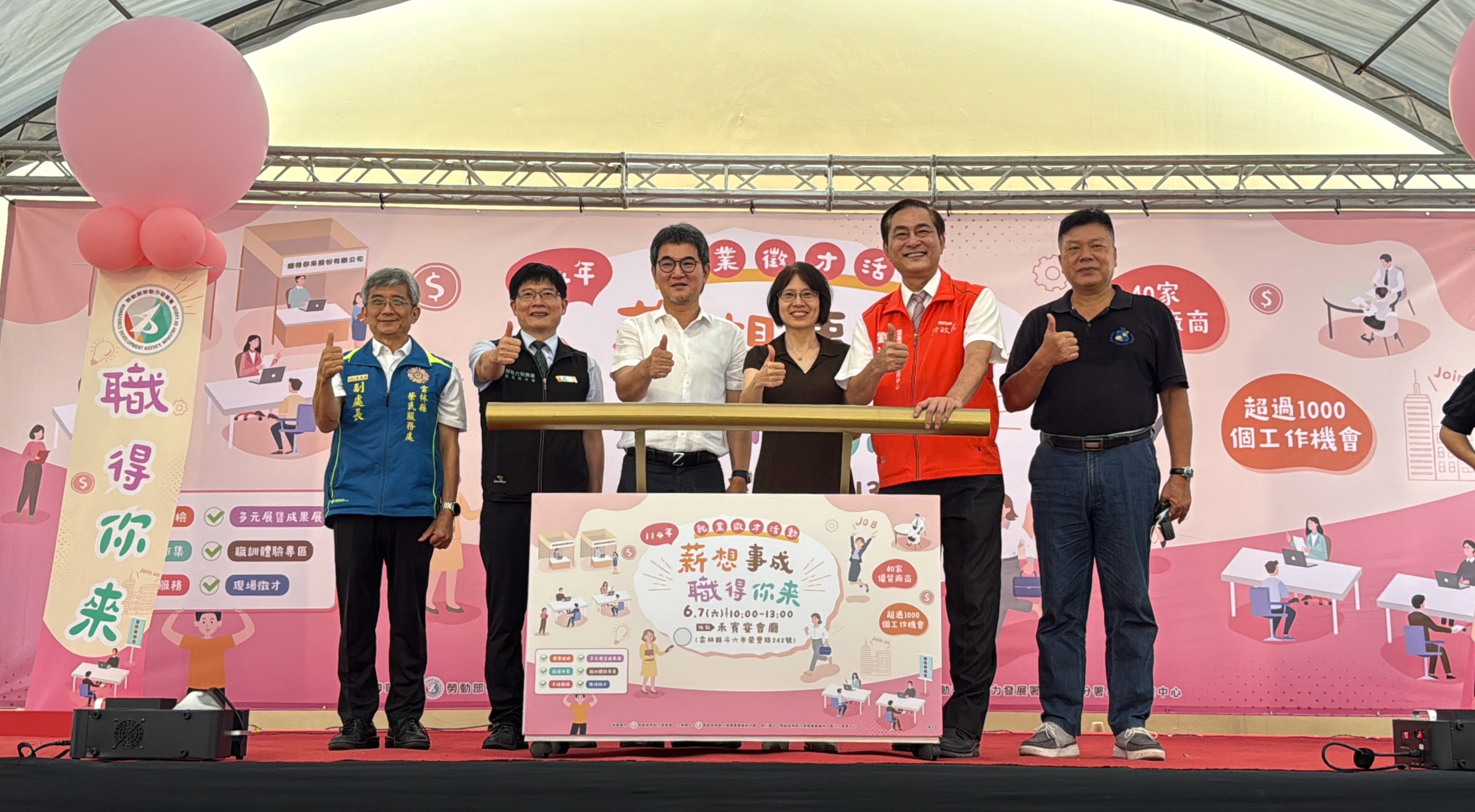 因應畢業季到來、並協助待業及欲轉職民眾找到工作,勞動部斗六就業中心於今日(6月7日)在禾賓宴會廳舉辦「薪想事成、職得你來」大型徵才活動,邀集40家廠商、提供超過1千個工作機會,約有9成為雲林在地職缺、僅少數需工作經驗,其中不乏科技廠及傳產公司,祭出70K以上月薪延攬人才,吸引許多民眾卡位尋職,還有庇護市集、多元展售成果、職訓體驗、免費手作DIY、集章兌好禮等活動,人聲鼎沸、熱鬧非凡,主辦單位初估湧進上千人次到場求職!